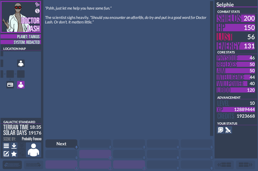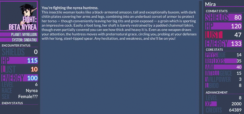 Wont activate until one of the other treatment cheats is activated. Since they were now done with that they brought a used but all-rounded and versatile all-purpose space ship in both decent shape and conditions for traveling across the planet and stars. The game is built to accommodate everything from you playing a studly ship captain to a busty space-slattern to a masculine-looking hermaphrodite to a hard-working mercenary. This category refers to character class types that player can potentially select during Character Creation. See the end of the work for notes Chapter 1. Demonoid Proxy Mirror Sites List. 204 lines 179 sloc 505 KB Raw Blame.
