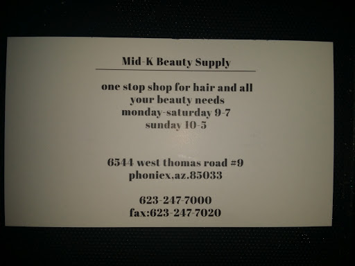 Visit Our Store Today. The entry is present with us since Sep 8 2010 and was last updated on Nov 14 2013. So if you are looking for a good beauty supply and live on the West side check out Mid -K.