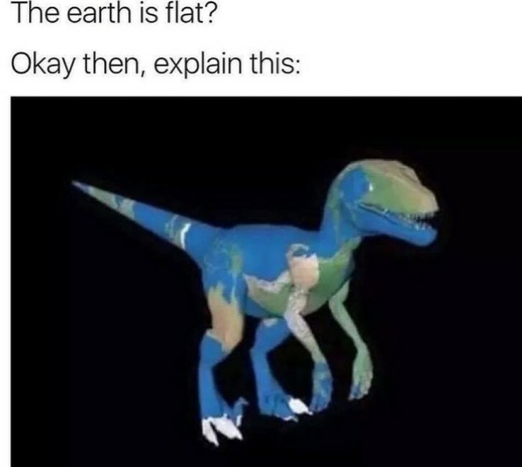 Haha you probably believe In the moon too. Have you laughed today. Two years ago an Instagram account called dinosaurearth began posting memes that satirize the flat earth mindset and theyve been going hard ever since. While the hypothesis is often dismissed as a weak easily disproved theory several different organizations online boast subscribers to the hypothesis who. The Earth definitely isnt Flat 34K views 6 months ago 5 Reasons why Earth is Dinosaur Shaped views days 16K top proof not spinning ball unrefuteable flat view months ago views guys wrong earth month definitely isnt reasons why dinosaur. Thats a joke right. The first group are the flat-earth young-earth creationists who are bible literalists.