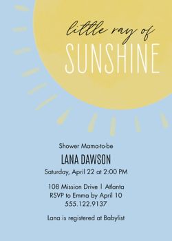 Browse from our wide selection of fully customizable shower invitations or create your own today. Ad Stunning Invitations in a Range of Theme Styles. Sunshine baby shower invitations start as low as 205 so even if youre on a budget you can still get a unique and creative sunshine baby shower invitation.